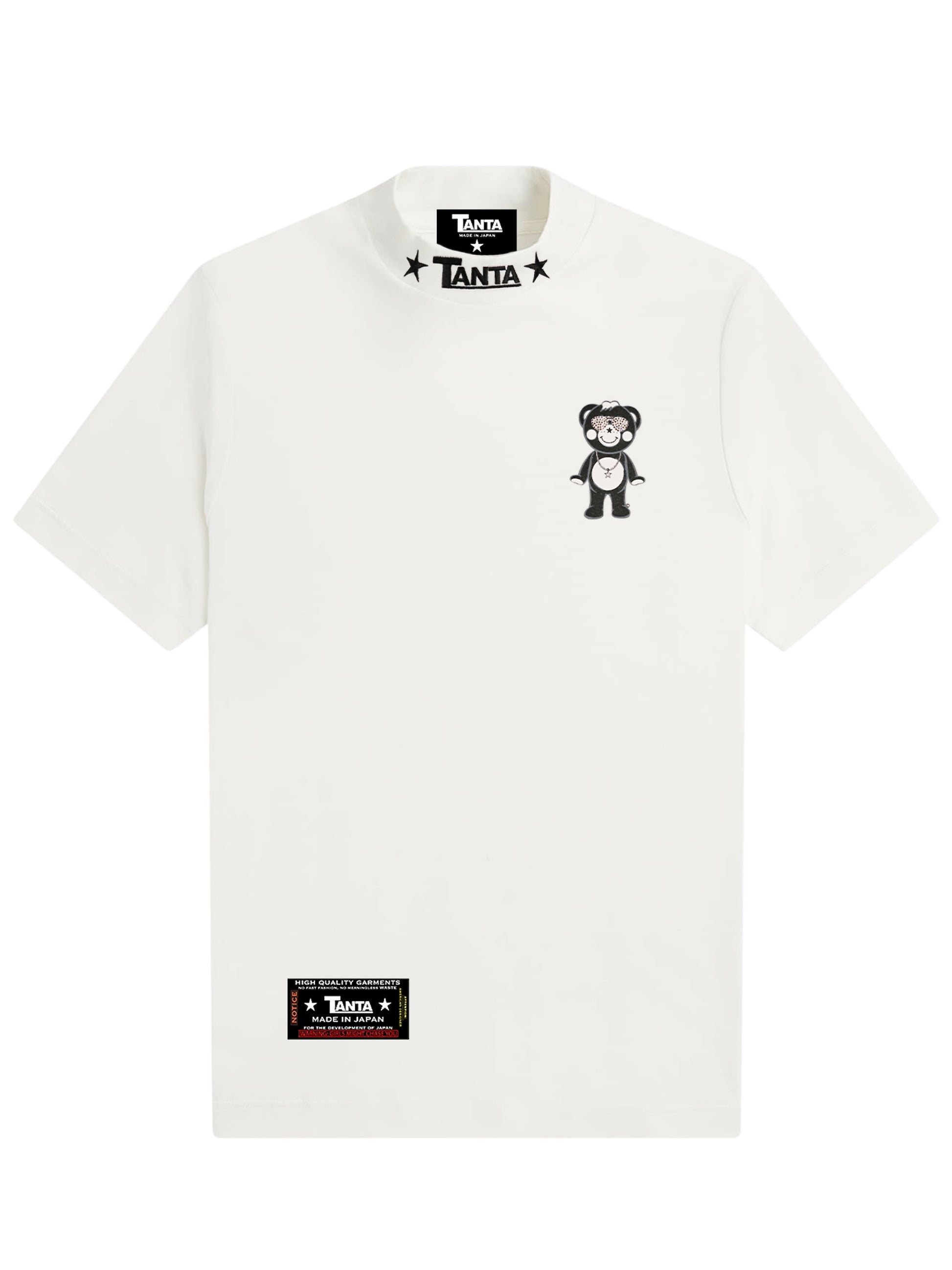 TANTAの新作ハイネックTシャツで、カジュアルラグジュアリースタイルを。細部にまでこだわり抜いたこのプレミアムなアイテムは、一流ブランドに匹敵する100%の高級コットンを使用しています。左胸にはTANTAのマスコットキャラクターが小さく描かれ、首元にはアイコンのロゴが繊細に刺繍されています。このTシャツは、快適さ、スタイル、洗練さを完璧に融合させており、最高品質の素材、匠の技のスクリーンプリント、本物スワロフスキーのクリスタルが贅沢感を添えています。最新ハイネックTシャツを着て、TANTAのファッションの卓越性を堪能してください。